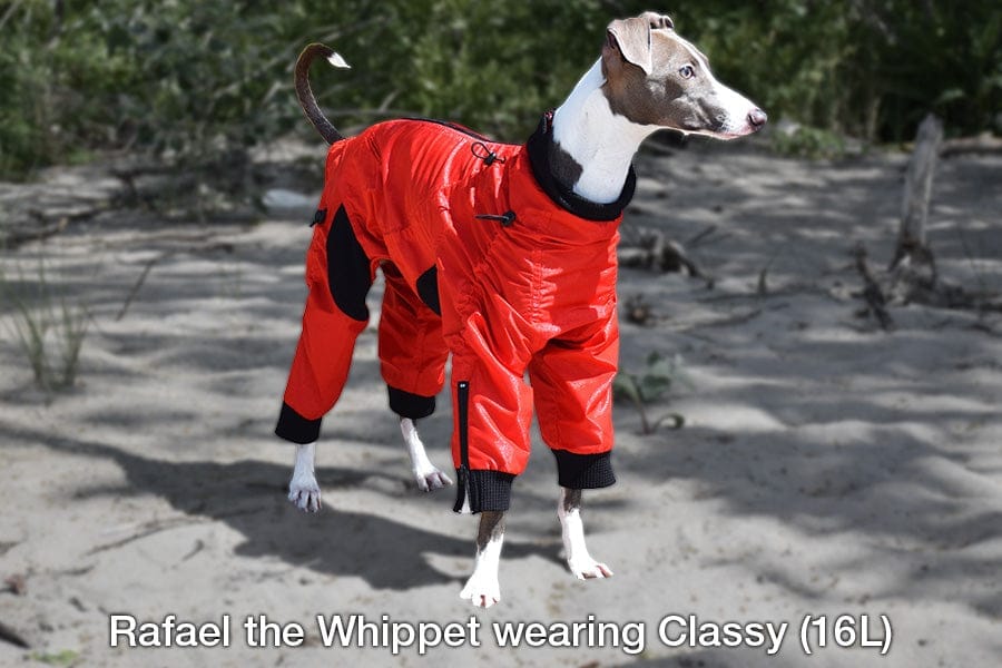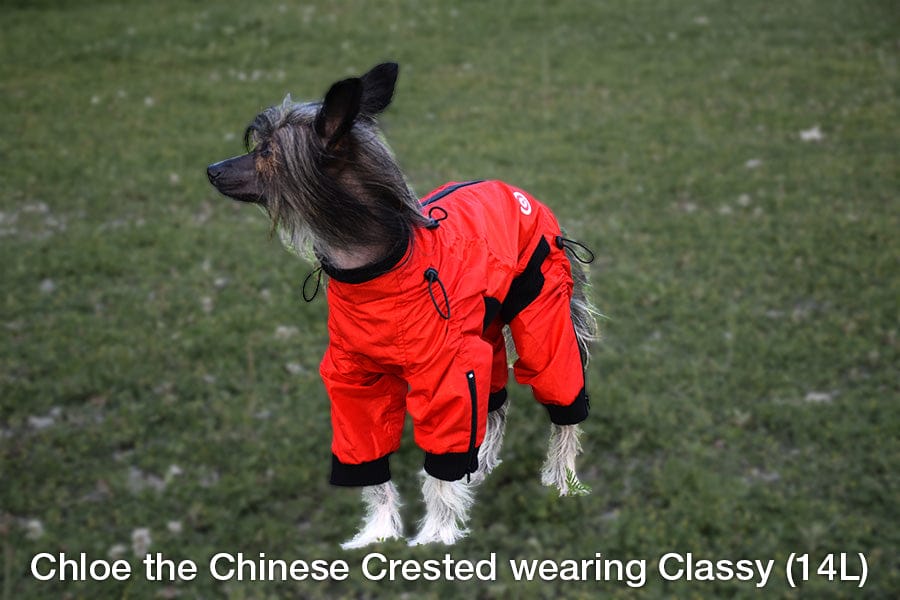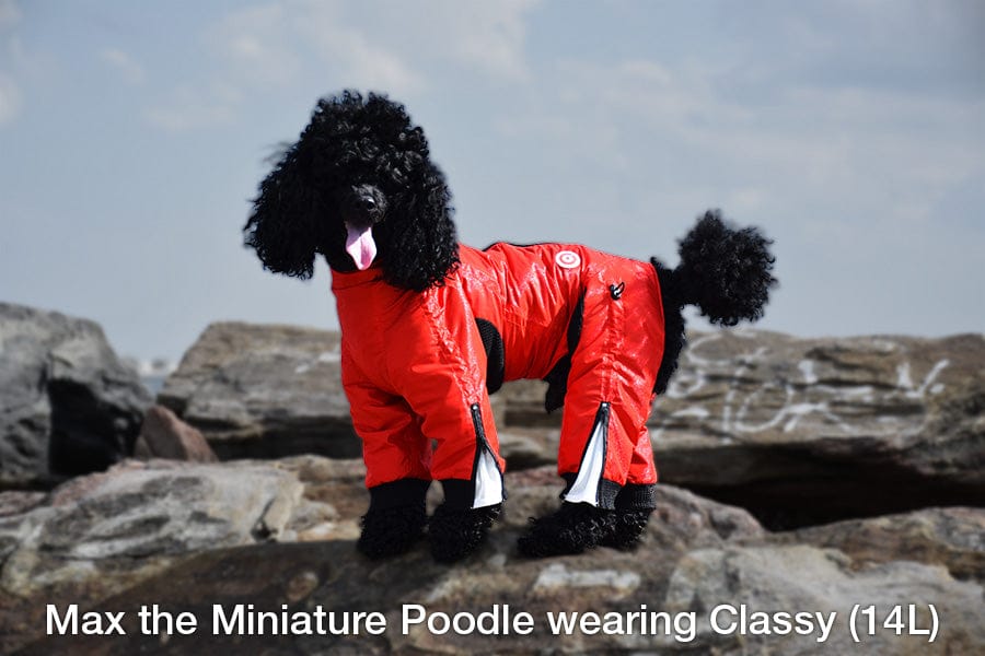 Zippy Dynamics’ Dog Suit “Classy” Full-Body Suit is a lightweight, water-resistant, and protective fashion statement for you and your dog. It features a classy red and black design made from only the highest quality materials. Without a warm inner lining, “Classy” is perfect for walks with your companion on warmer or cooler days. Like all Zippy Dynamics suits, this Dog Suit has a full body fit that is adjustable to your pup and protects them from rain, snow, dirt, and other seasonal and non-seasonal elements. This saves a significant amount of the time you spend bathing your dog, and all you have to do is occasionally throw the suit into a gentle wash cycle and leave it out to dry.